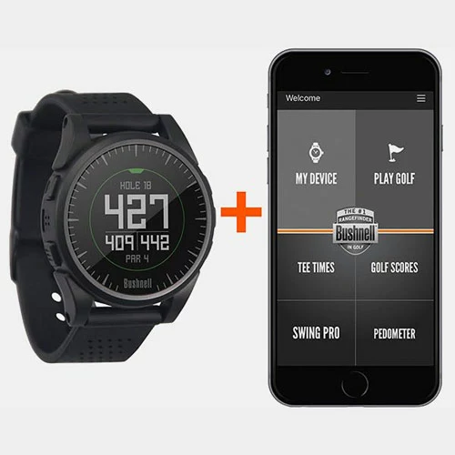 BUSHNELL GOLF APP FEATURES:• App included with purchase of Excel Watch• Full color aerial views of hole layouts with distances• 3D flyovers with distances• Scorekeeping• Book tee times• Swing analysis stats• Pedometer and Fitness Trackers