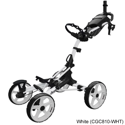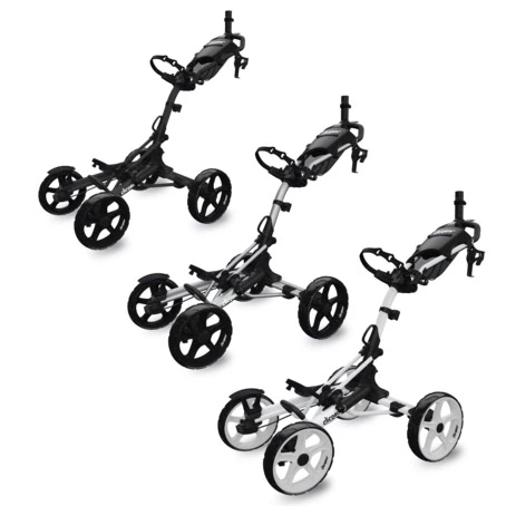 Clicgear’s advanced 4-wheel cart gets even better with the all new model 8+. An improved brake and new lower silicone bag strap lead the list of enhancements new to the 8+. The maintenance free airless tires are designed to efficiently maneuver any course. Clicgear’s patented V-Slide frame makes collapsing and opening the cart a breeze. The adjustable dual front wheel alignment system ensures your cart will always push straight. The Clicgear Model 8+ is engineered with the highest standards of quality and reliability.