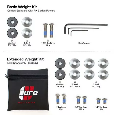 Fully customizable with a wide range of both weight and lie adjustability, you can easily dial in the perfect fit and feel to suit your stroke and tempo and change your setting anytime you wish. Additionally, shafts are interchangeable and can be converted from R to L handed.Nothing rolls smoother! Like all RX Series Putters, the RX4 features a higher center of gravity, lower loft, and a deeper face that impacts the ball at the equator, eliminating backspin and creating a lower, more consistent launch angle and superior forward roll, helping the ball stay on the intended line.RX3Redesigned for 2016, the RX3 is the smallest putter in the RX Series, featuring a streamlined 5.25″ profile for a sleeker look at address and a spiral milled face for a softer feel. The Cure RX3 has extremely High MOI which delivers incredible stability throughout your stroke, helps you square the putter at impact and offers unmatched forgiveness on mishits. This translates to better distance and directional control and improved consistency.• Available R /L handed, standard lengths, with offset shaft.• Includes Basic Weight Kit & Headcover• Conforms to USGA RulesRX4New for 2016, the RX4 is our midsize putter in the RX Series. The RX4 has a 5.5″ profile, center shaft and a spiral milled face for improved feel and sound. The Cure RX4 has extremely High MOI which delivers incredible stability throughout your stroke, helps you square the putter at impact and offers unmatched forgiveness on mishits. This translates to better distance and directional control and improved consistency.• Available R /L handed, standard lengths, with straight or offset shaft.• Includes Basic Weight Kit & Headcover• Conforms to USGA RulesRX5New for 2016, the RX5 is the largest size putter in the RX Series. The RX5 has a 6″ profile, center shaft and a spiral milled face for improved feel and sound. The Cure RX5 has extremely High MOI which delivers incredible stability throughout your stroke, helps you square the putter at impact and offers unmatched forgiveness on mishits. This translates to better distance and directional control and improved consistency.• Available R /L handed, standard lengths, with straight or offset shaft.• Includes Basic Weight Kit & Headcover• Conforms to USGA RulesRX6New for 2016, the RX6 is an improved version of the original Cure Putter. The RX6 is our largest size in the RX Series with 6″ profile, no rear flange, and center shafted. The new spiral milled face delivers improved feel and sound. The Cure RX6 has extremely High MOI which delivers incredible stability throughout your stroke, helps you square the putter at impact and offers unmatched forgiveness on mishits. This translates to better distance and directional control and improved consistency.• Available R /L handed, standard lengths, with offset shaft.• Includes Basic Weight Kit & Headcover• Conforms to USGA Rules