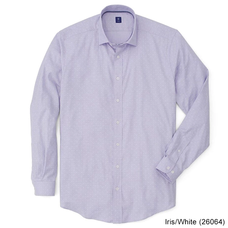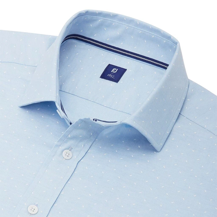 A classic button down shirt elevated by premium fabric and understated details. Crafted from stretch cotton oxford overprinted with a white motif.
