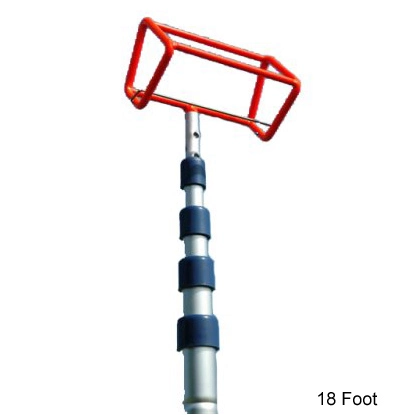 This design allows you to retrieve two balls at once. It comes with a safety catch that prevents the ball from coming out until you are ready to remove it. You don’t have to “see it” to “retrieve it” with this model. As you dredge the water, you can feel the balls fall in. The hardened steel head design has an orange epoxy coating for durability and visibility.