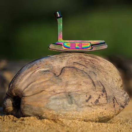 Kronos Golf Limited Edition Series Hawaiian Touch PutterThe Hawaiian Touch putter is a limited edition color Touch putter. Inspired by Japanese pottery glazes such as the Shino glaze and Tenmoku glaze that change color depending on their location in the kiln during the firing process. The Hawaiian color PVD (Physical Vapor Deposition) is similar to the Japanese glazes, where the putter’s color varies depending on the location inside the PVD chamber. The non-uniform nature of this color makes each piece truly unique. The color has been known to change over time, some becoming more rainbowed with hues of blue, green, and purple.A classic design with a Kronos twist. Design and materials pay homage to 1900s. Unlike its predecessors and contemporaries, this putter showcases highly precise milling. Minimal finishing is required. The sharp lines and mill marks tell the story of the club’s crafting. Milling from a single piece of carbon steel is labor and materials intensive but necessary to create a soft seamless piece. A thick topline provides solid feel upon impact. The silver pearl finish refines and completes the putter.This limited edition Rare Series putter uses 11L17 carbon steel. This leaded steel is naturally a softer than stainless steel. Because carbon steel rust the club is coated with a protective layer of nickel, chrome, and PVD. The coating combination has been tested to be more rust resistant than stainless steel. The Hawaiin color PVD is a unique color to Kronos putters that highlights the fine milling.