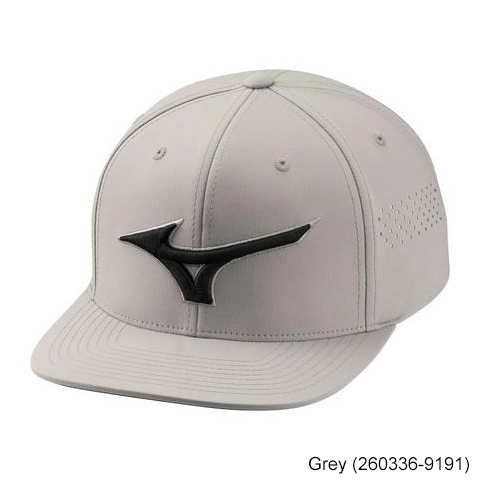 The Mizuno Tour Flat Snapback is a flatbill that shares the same fabric as the Tour Delta style with an adjustable snapback closure. Laser cut vent holes on the side panels add breathability and give the hat a modern look. Features a 3D embroidered logo with accent color outline. The new 3-layer multi-function headband features patent-pending stain block technology to prevent sweat stains on the cap’s crown.