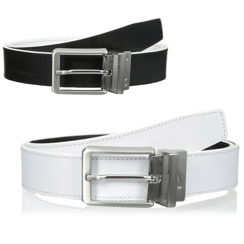 For customized style on and off the course, pick up the Nike Core Reversible Belt. Designed with a pebble grain leather strap, this belt features a rotating buckle for easy transition between color options. A single-edge stitch and engraved Swoosh® logo buckle finish your look in classic style.