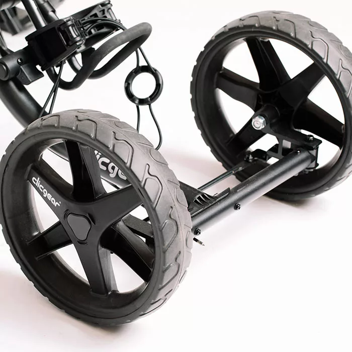 This retrofit kit turns your Clicgear 3.0/3.5+/4.0 into a 4 wheel swivel cart using the existing back wheels. It makes your Clicgear a lot more maneuverable.