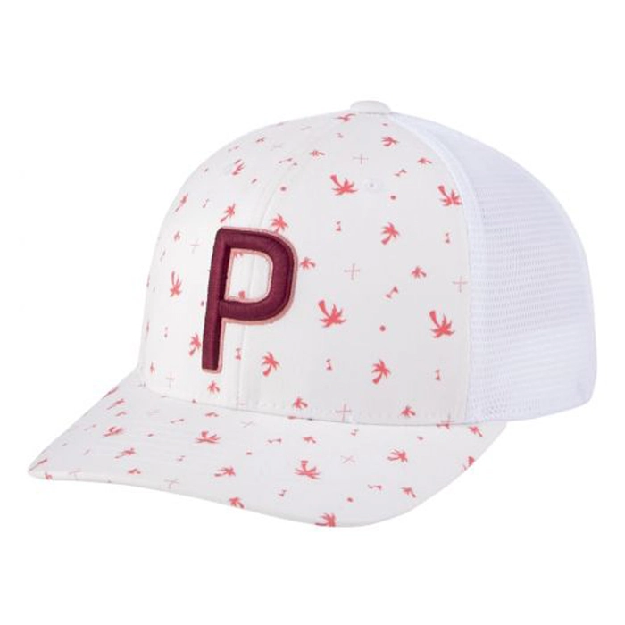 Major tropical vibes. Featuring a trendy, all-over design with golf balls, cross clubs and palm trees.