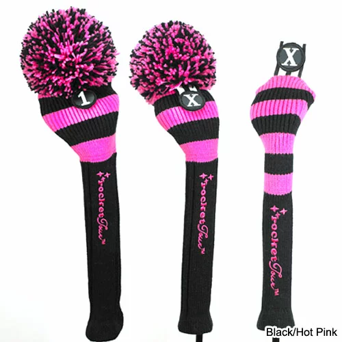 RocketTour Black Base Rugby Stripe Pom Pom HeadcoverA Classic Rocket Tour look! This was the first style Rocket Tour made and a player favorite for sure! Bold & confident rugby stripes, floppy pom poms and the recognizable black and white number tag available in staff bag colors, team colors and a host of other cool shades. Available in Driver & Fairway sizes. Each fairway size cover comes with X, 3, 5, 7 number patches.Fabric: 100% Wool100% Hand Crafted