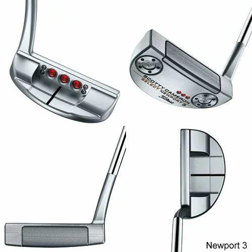 Continuing the evolution of a line engineered for performance, milled to precision and designed with elegance, the next generation of Scotty Cameron Select™ putters extends Scotty’s proven multi-material construction methodology of combining face inlays of either 303 stainless steel or 6061 aircraft-grade aluminum with stainless steel bodies for superior balance, weight distribution, sound and feel.