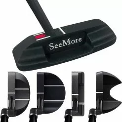 The Si5 RST Hosel mallet, is for the player who prefers to have his or her hands slightly forward. It has a very pleasing mallet shape with sleek lines, instilling a ton of confidence. Great option for golfers who typically enjoy larger mallets. The black matte finish highlights SeeMore’s patented and proven alignment system. Offset plumber neck design. 10 degree toe hang. Cast 303 stainless steel with milled face. Available with lightweight steel shaft (80 grams), or standard steel shaft (100 grams), depending upon golfer’s preference for total putter weight. Full alignment benefits of RifleScope Technology (RST).