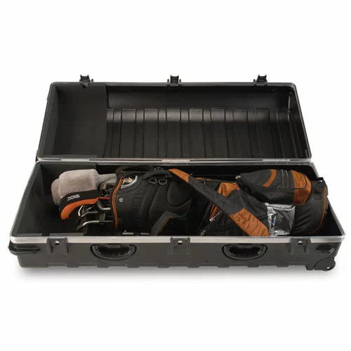 Designed to accommodate two standard sets of clubs, or a staff bag along with other travel items, this case is molded from ultra-high molecular weight polyethylene, the material specified by the U.S. military for cases and containers. This case is capable of accepting drivers up to 50″ in length and with a width of 20″. Made in North America, the SKB ATA Double Golf Travel Case is made to ATA 300 Category I specifications which is the highest shipping container specification of the ATA.The Double ATA Golf Travel Case comes with TSA Locking System for ease of airline travel, SKB’s exclusive Perfect-Matchâ„¢ valance bending system, providing tight, secure fits to prevent dirt, dust and moisture from getting inside the case. This case comes with our Unconditional Lifetime Warranty and SKB’s $1,500 Club Coverage.