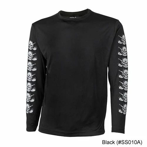 Tattoo Golf Long Sleeve Skull Sport Shirt, These light weight long sleeve sport shirts feature the Tattoo Golf skull design silk-screened on the sleeves.Light weight, moisture wicking, high performance sport shirt3.8 oz., 100% polyester