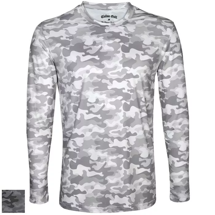 Same great performance – new Camo design and color!! Tattoo Golf High Performance Under-Layer Long Sleeve Shirt, These light weight long sleeve sport shirts feature an all-over camo print with sublimation Tattoo Golf skull design at the bottom of the left sleeve as well as on the back, below the collar. Light weight, moisture wicking, high performance sport shirt 180gms 90% polyester 10% spandex knitted fabric