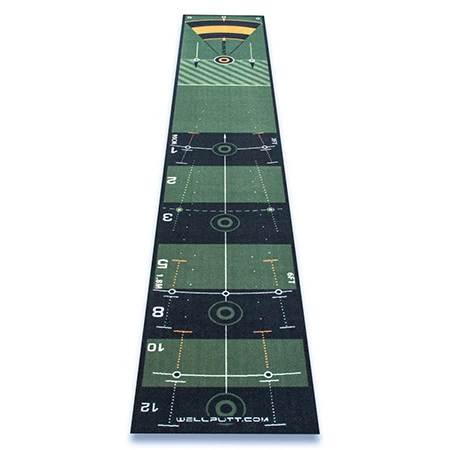 Wellingputt 10ft Standard Putting MatThe “STANDARD” Welling-putt is the ultimate putting mat, not just by its concept, but also the quality of its texture and the exercises in its Training Book. Speed 08/10FTWelling putt has been designed based on the theories of Alain Berthoz who advanced the hypothesis that:“The Memory of space in fact calls on a memory of movement, this being based on body movements associated with visual points of reference“.